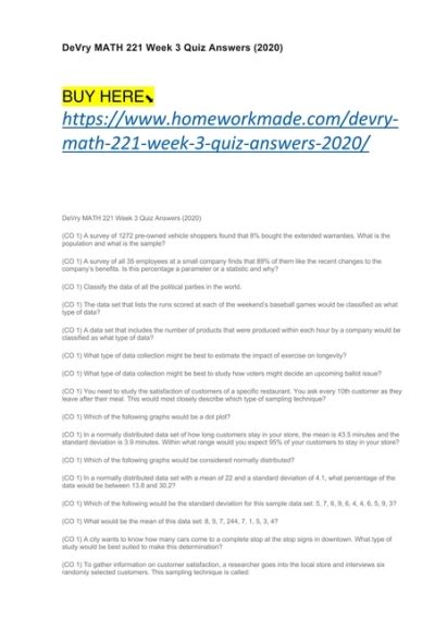 Reading Online devry math 221 week 3 quiz answers Audio CD ManyBooks